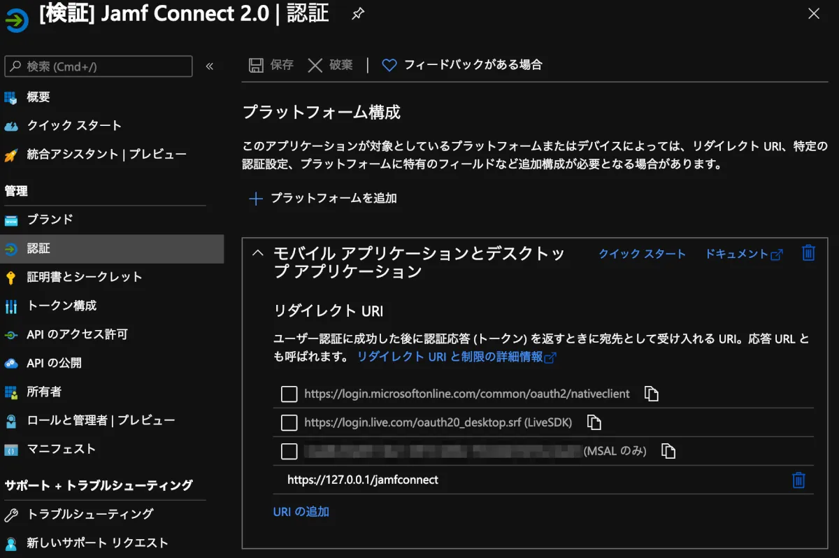 Jamf公式ドキュメント:https://docs.jamf.com/ja/jamf-connect/2.0.0/administrator-guide/Microsoft_Azure_AD_%E3%81%A8%E3%81%AE%E7%B5%B1%E5%90%88.html