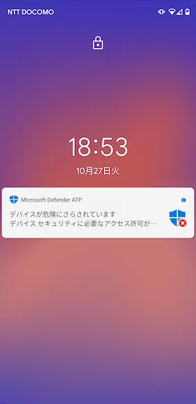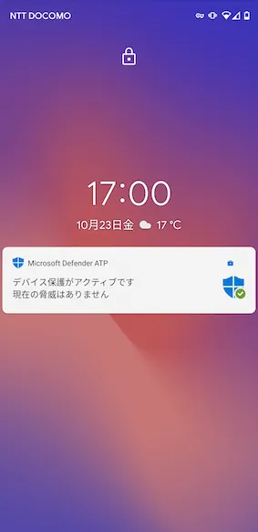 - ちなみにVPNの設定などをせずに放置しているとMDATPが通知を出してくれます。こちらはタップすると自動でMDATPの設定画面が立ち上がります。