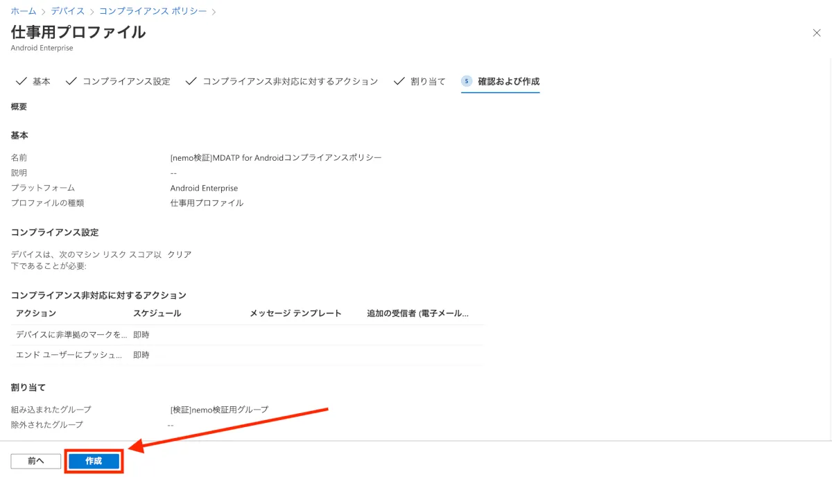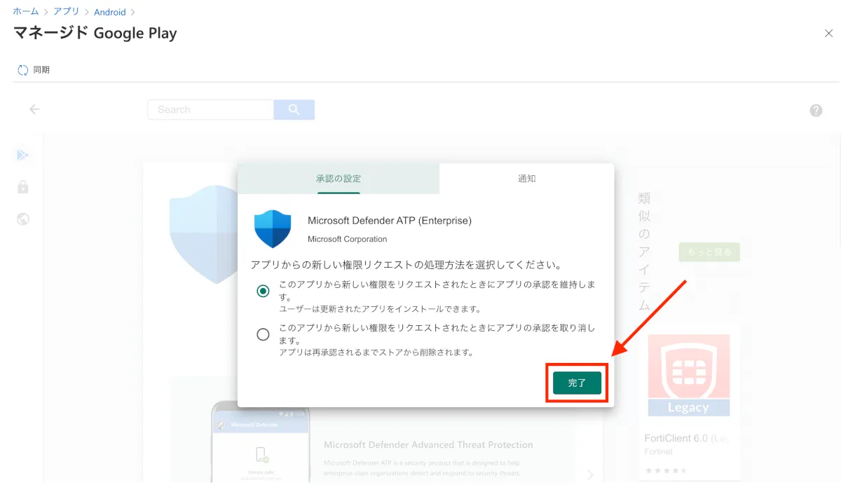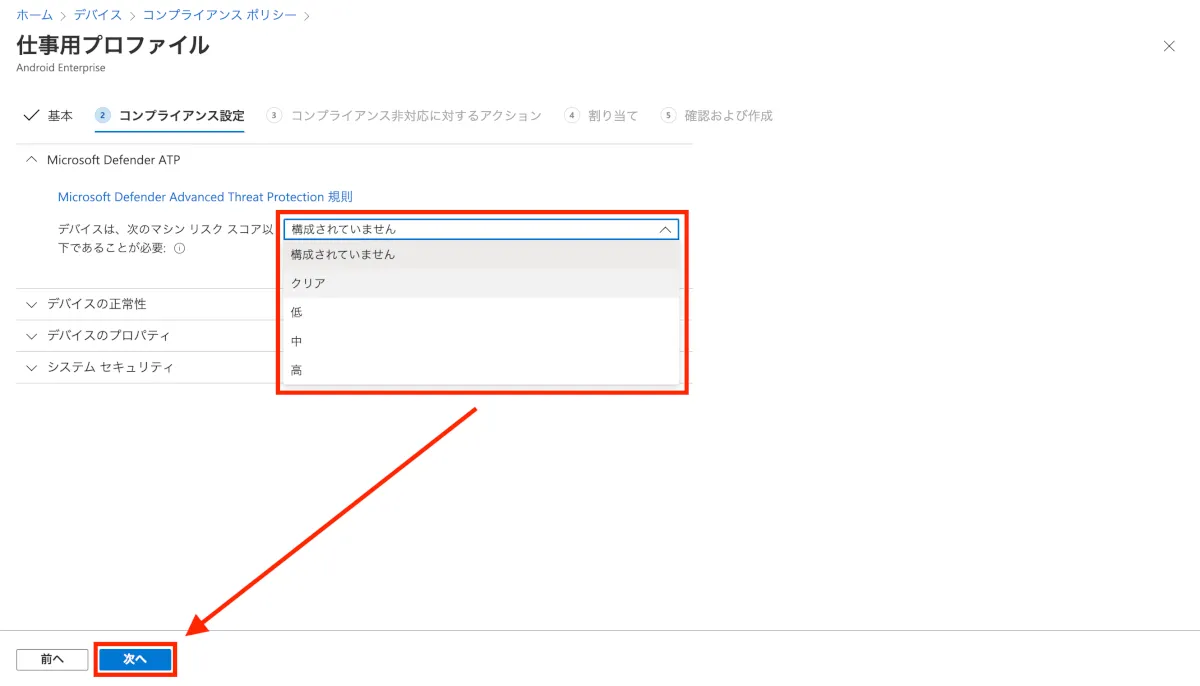 コンプライアンスポリシーの要素としてMDATP for Androidを設定する