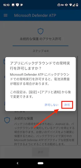 - バックグラウンド起動に関する画面が表示されるので”許可”を選択します。