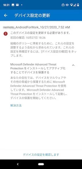それではAndroidデバイス上でインストールされたMDATPを確認していきます。