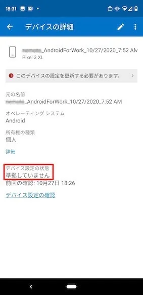 - Intuneポータルを開くと、MDATP for Androidが有効になっていないことが原因でデバイスが準拠していないということが確認できます。