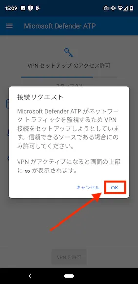 - VPN接続に関するリクエストが表示されるので”OK”を選択します。
