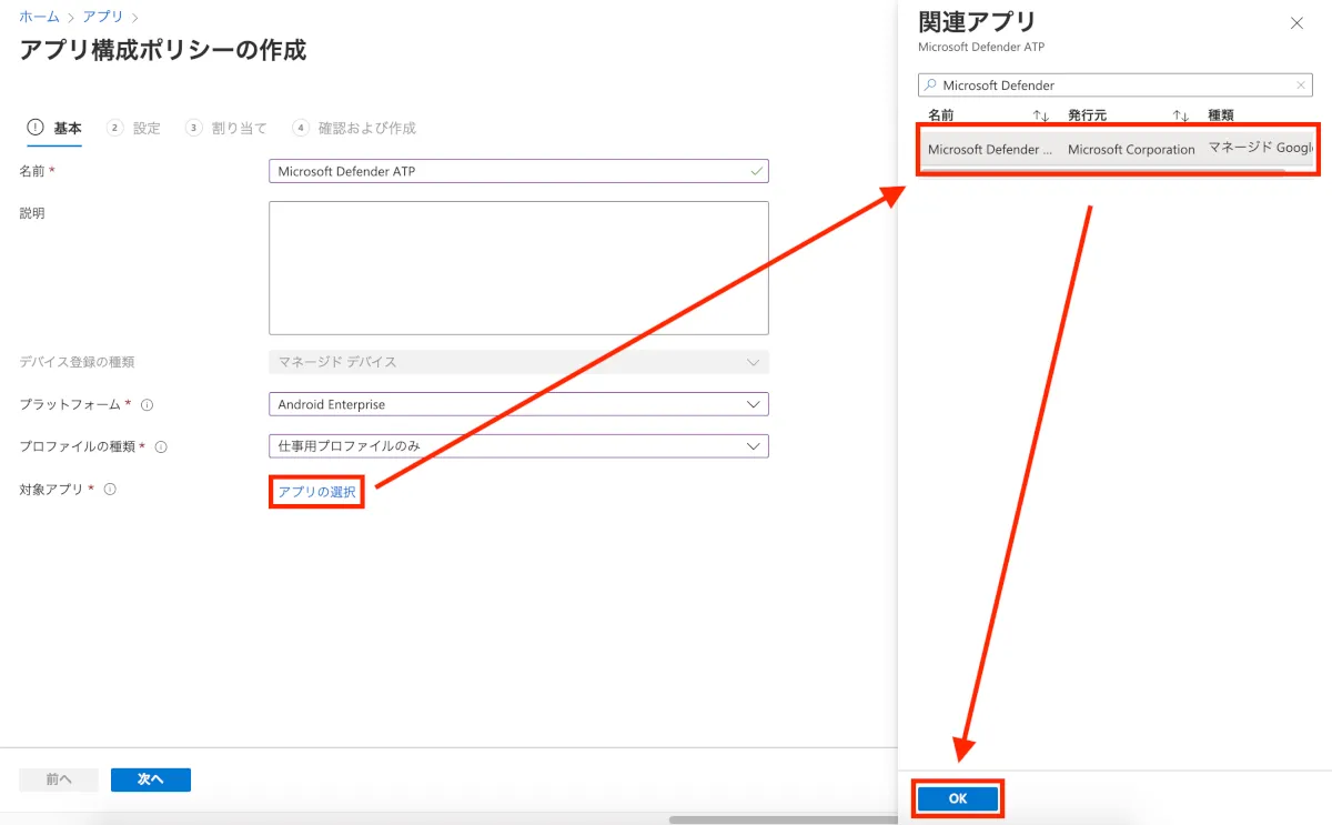 - アプリの選択:Microsoft Defender ATP(Enterprise)