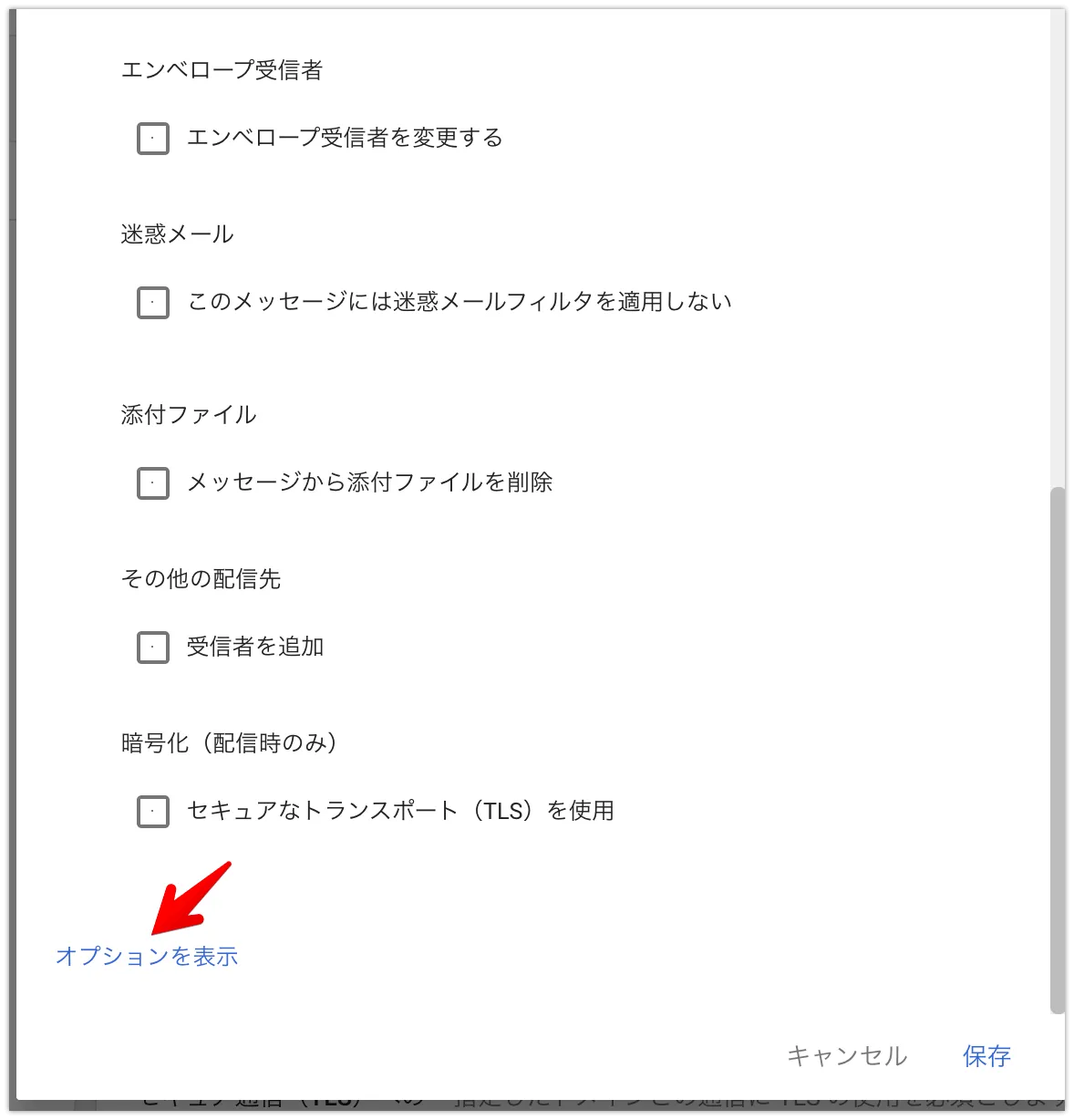 オプションを展開します。以下のように設定します。