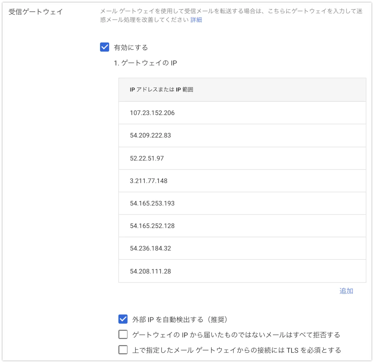 受信ゲートウェイ設定は以上です。