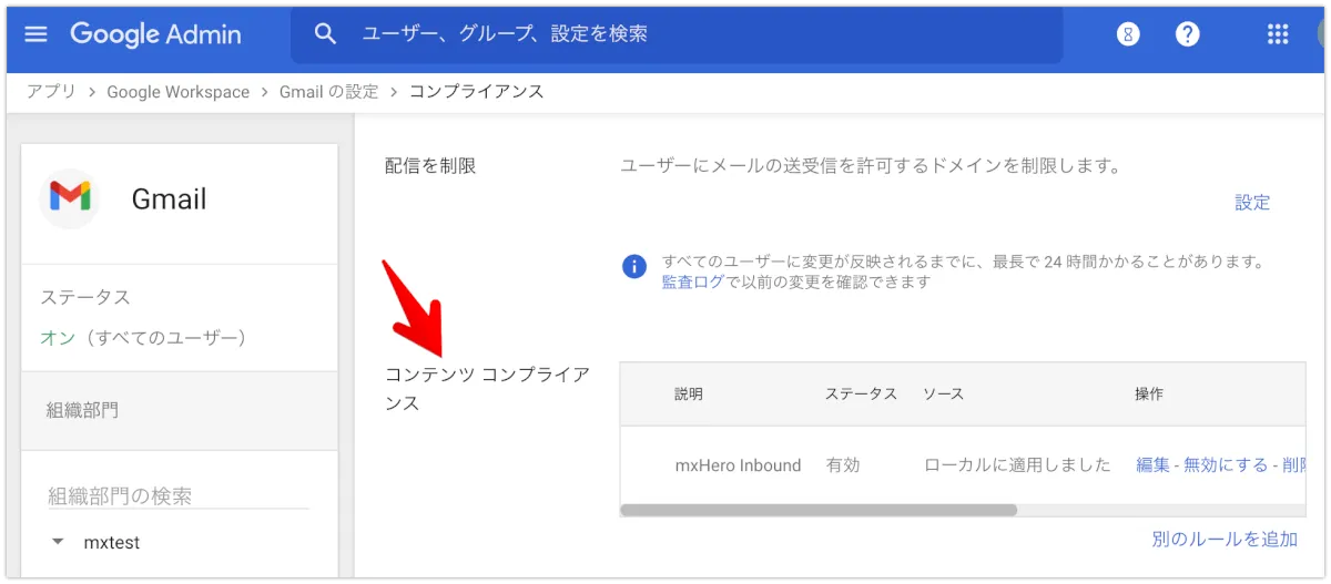 コンテンツコンプライアンスの設定は以上です。