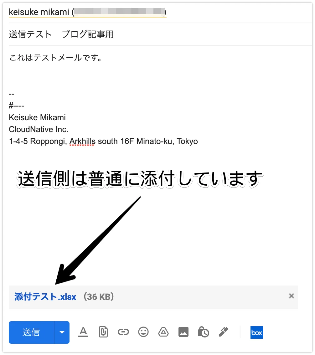 送信側がこのように普通にファイルを添付しても、