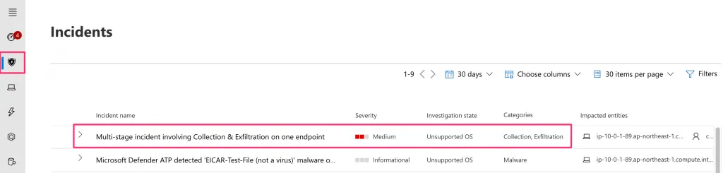 しばらくするとMDATP管理画面でインシデントが確認できます。