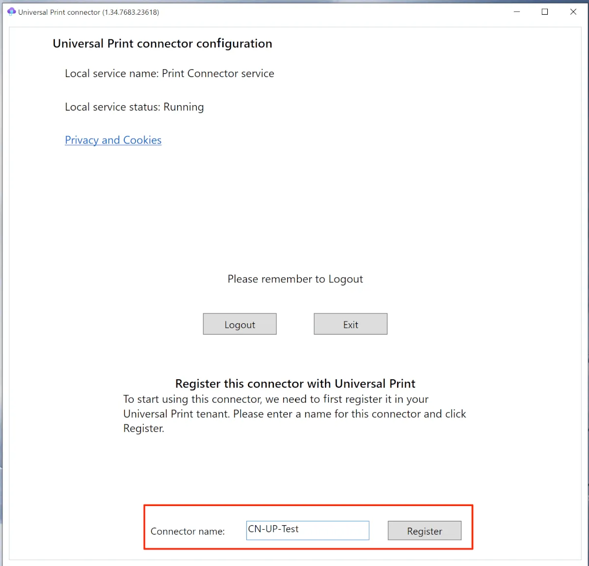 - インストールが完了したら、Universal Print Connectorを起動します。