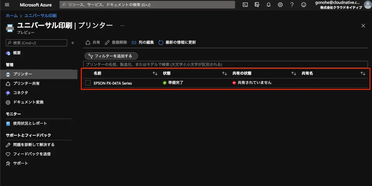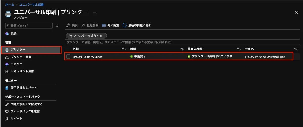 - 僕の家に眠ってたプリンターは(当然)Universal Print未対応だったので、Universal Print Connectorを設定します。