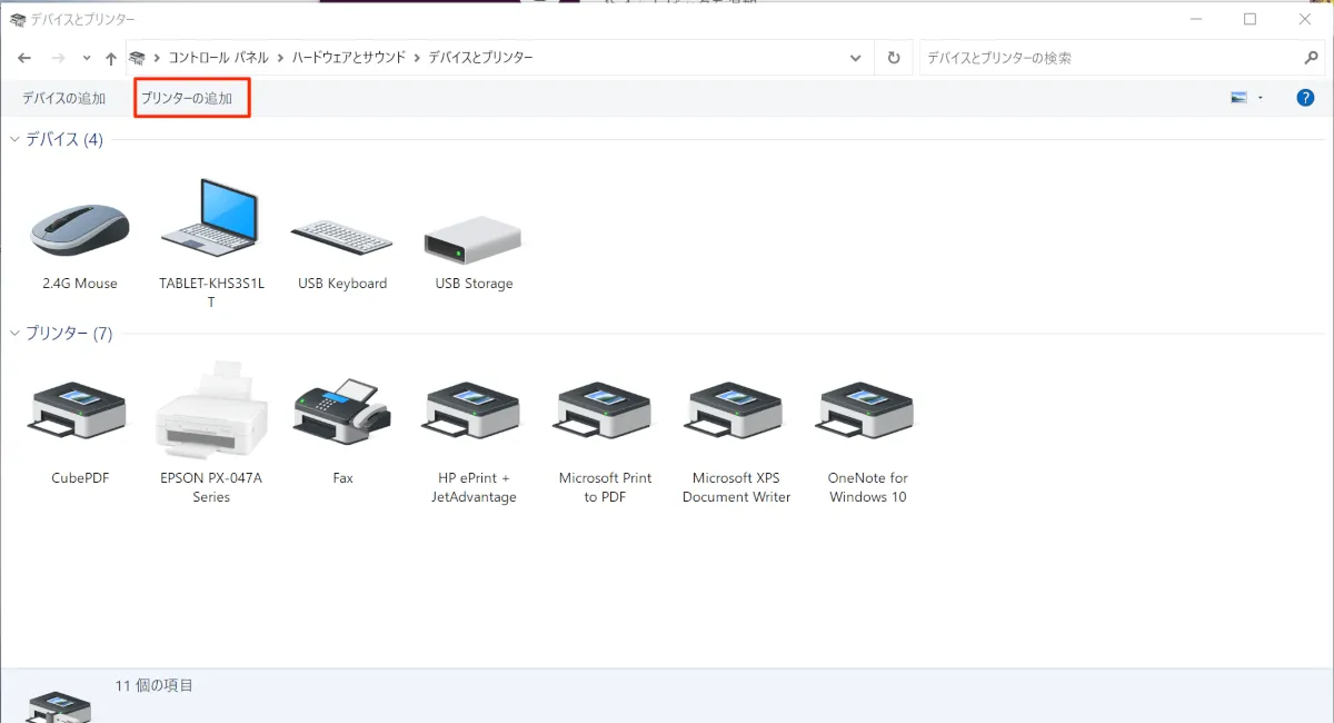 - 前述の手順で追加したプリンターが表示されていることを確認します。