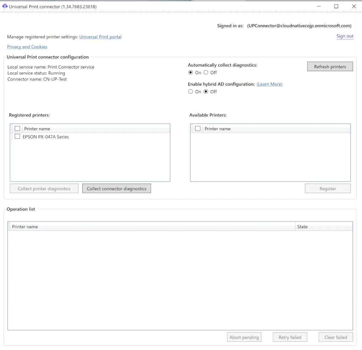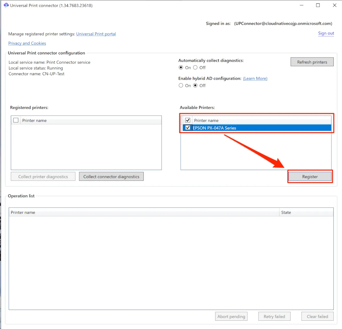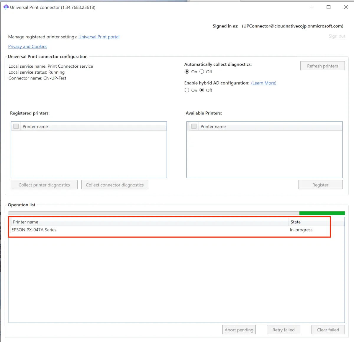 - プリンターの登録プロセスが開始され、Operation listにプリンターの表示が移動します。