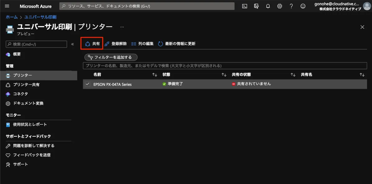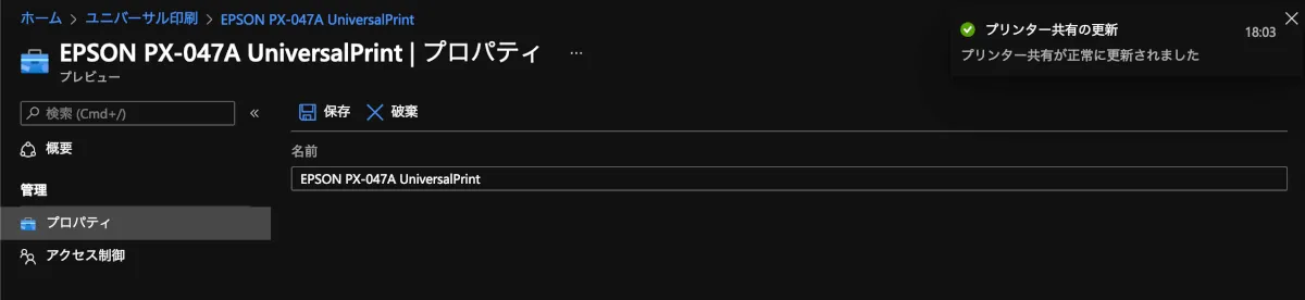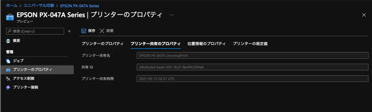 - 以下のAzure Portalにアクセスし、Universal Printのページを開きます。