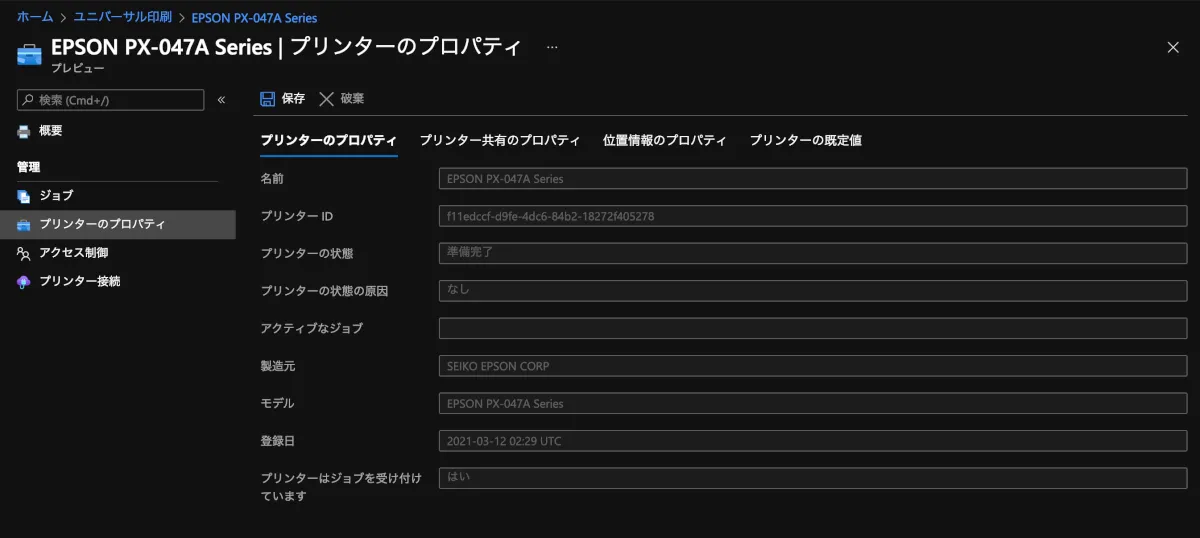 プリンターを管理する側であれば、プリンターのジョブやプロパティをAzureポータルから操作できるため、プリンター絡みの問題でわざわざ出社せずに済むことができそうです。(プリンターの紙詰まり等の物理的な不具合は、各人に頑張ってもらいましょう笑)