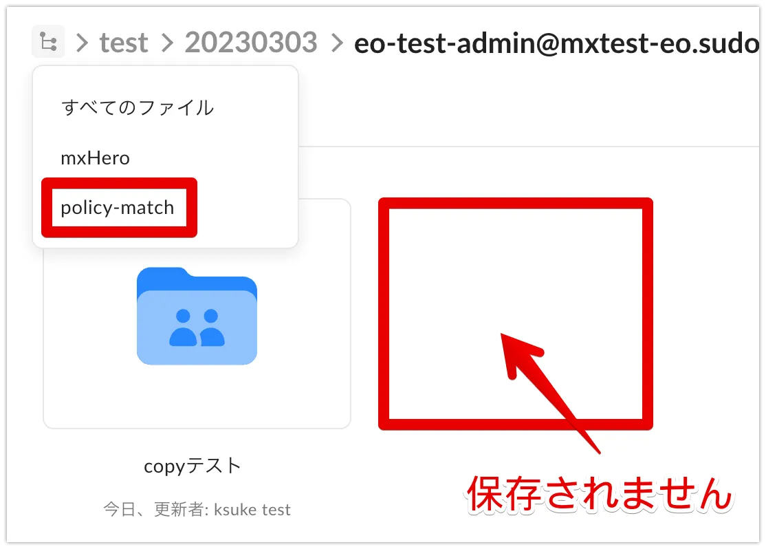 そして以下のような、ポリシーにマッチしないものは、指定したフォルダには保存されません。