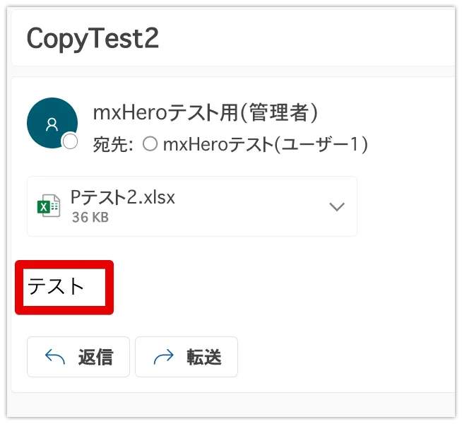 以下の例で動作確認をします。宛先は内部のユーザーです。