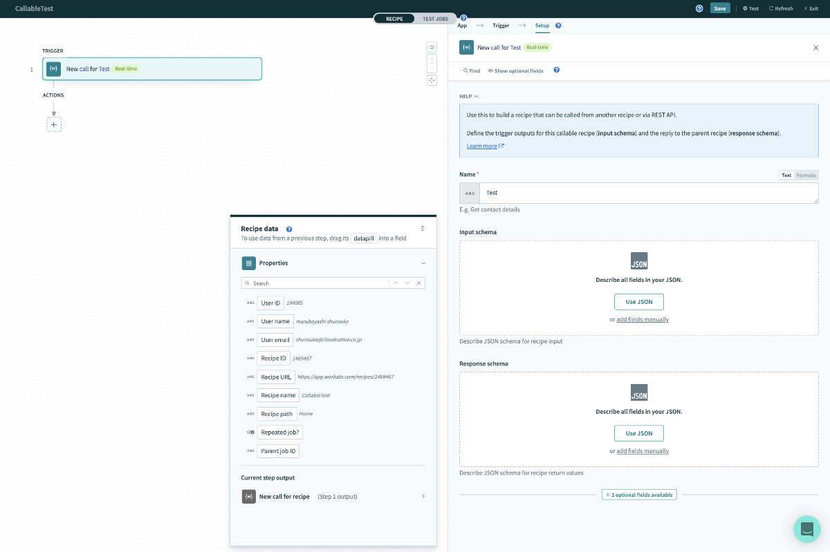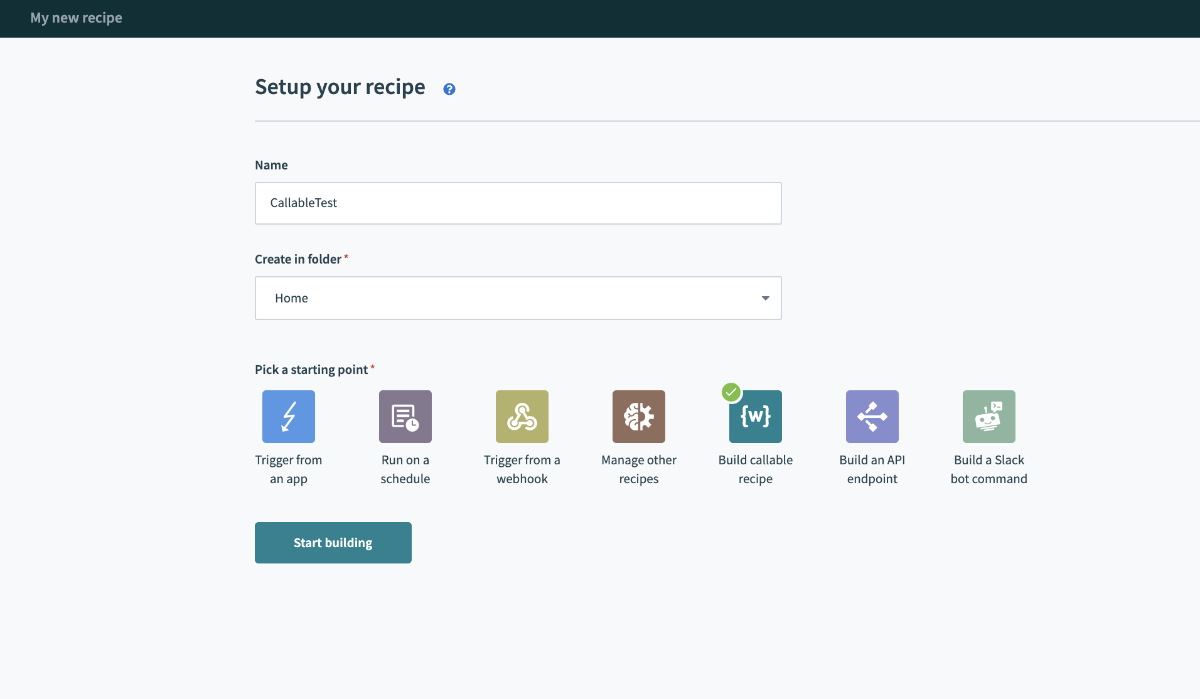 Recipe → NewRecipe→ 適当に名前入れてBuild Callable recipeをクリック