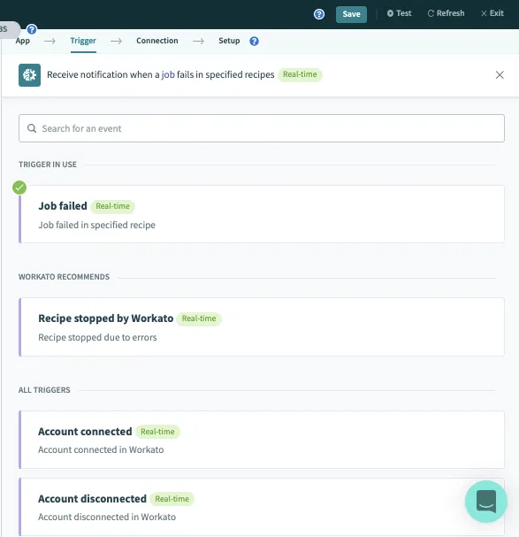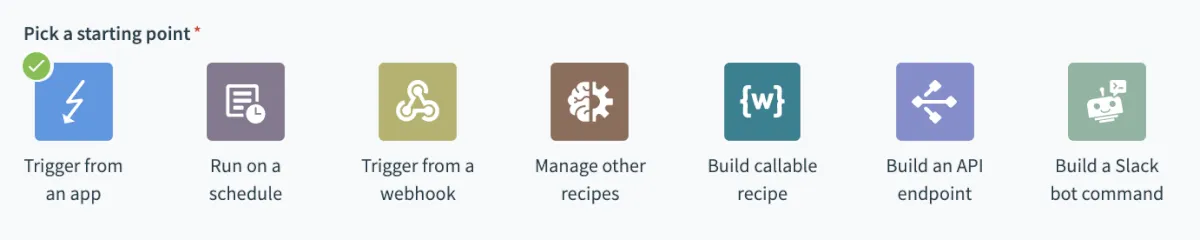 Workatoのレシピを実行するきっかけを設定するのがトリガーです。
