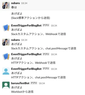 ということでWorkbotを使わずにBotとして投稿させる方法をいろいろ試してみました。