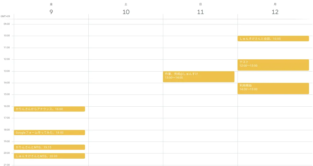 - 初回のみ:Googleシート,Googleカレンダーの認証をする
