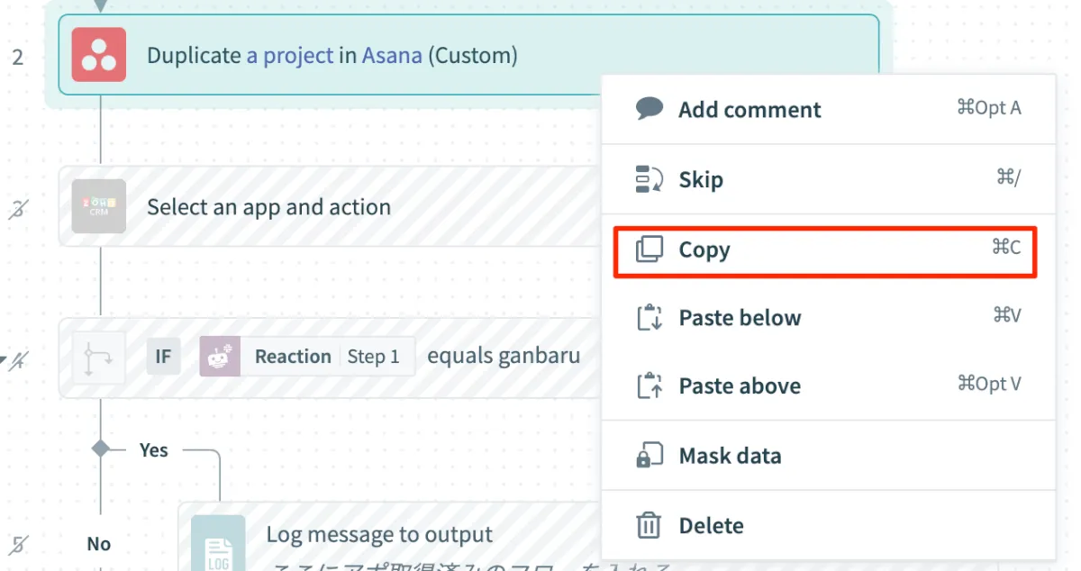 別のレシピからアクションをコピー、ペーストできるようになりました。