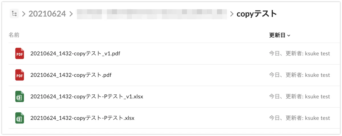”書類””test”共に設定通りに保存されていれば、動作確認は終了です。