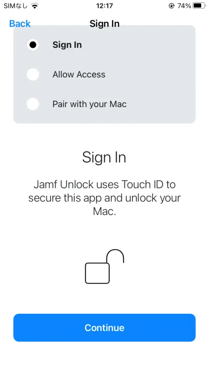 Jamf Unlockを開くと認証を求められるので認証します。