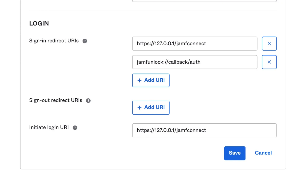 jamfunlock://callback/authを追加し”Save”を押して保存します。