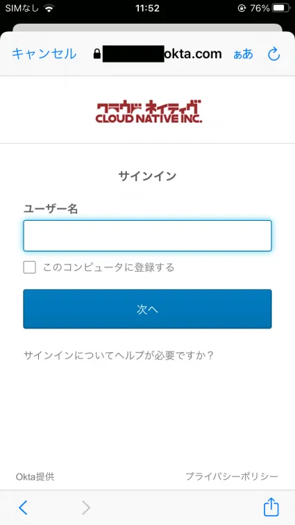 Oktaの認証画面が表示されるのでそのまま認証します。