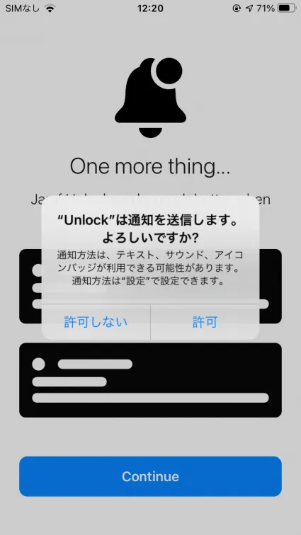 「”Unlock”がサインインのために”okta.com”を使用しようとしています。」とでるので続けるを押します。