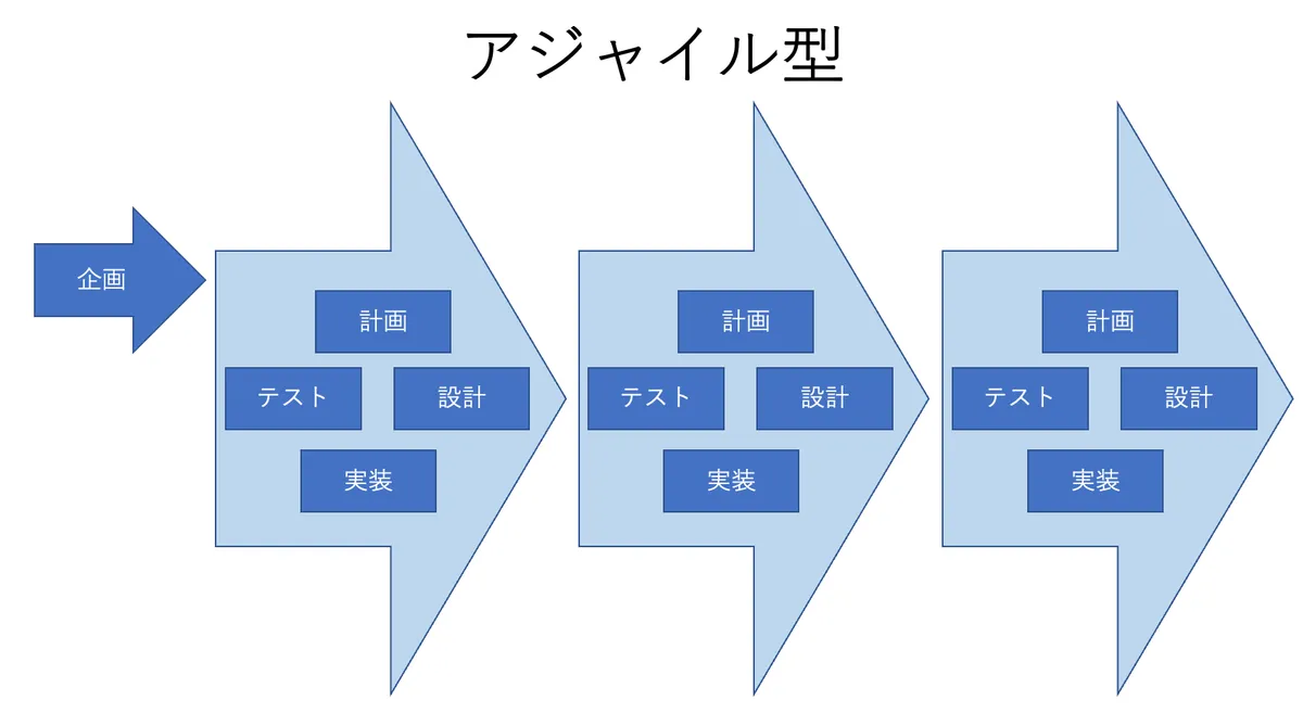 ただ、初日の時点でなんとなく、ウォーターフォール型とアジャイル型って開発の方法があって、どうやらこんな感じとイメージがつきました。