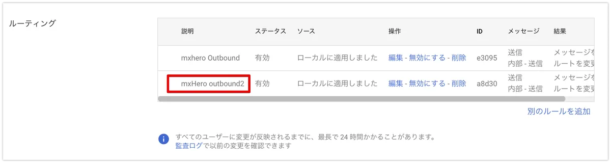 以降は、通常通り、mxHero側のダッシュボードにてユーザー登録を行い、テスト用のFusionルールを作成してテストを行います。