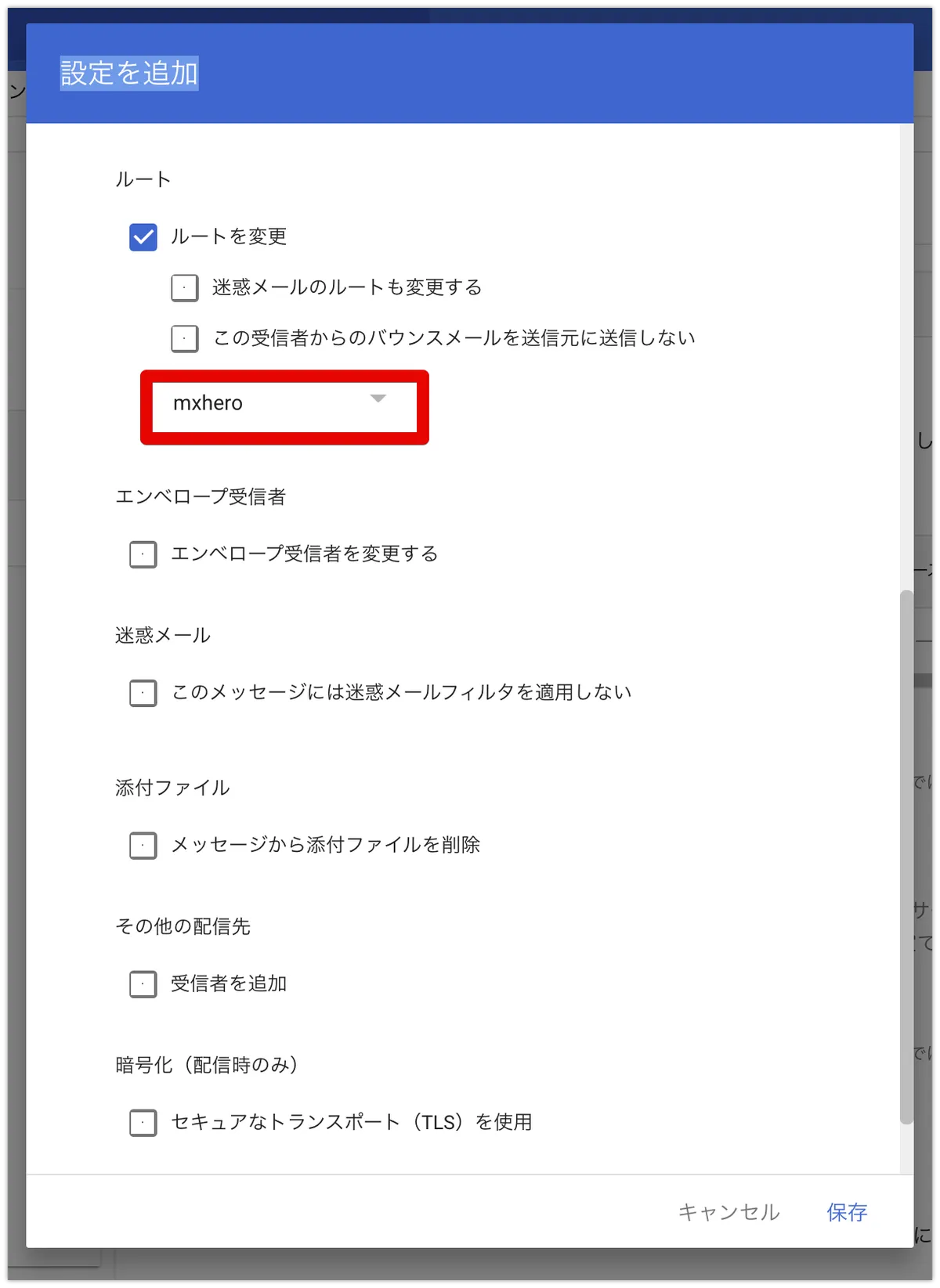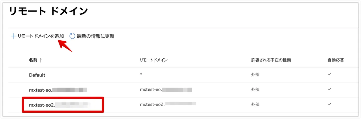次に、リモートドメインに今回追加したドメインを設定します。設定値は既存を踏襲します。
