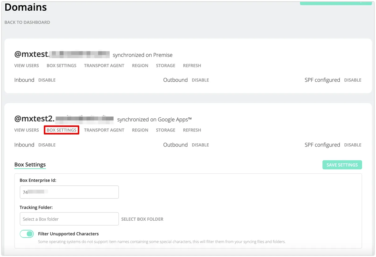 また、Boxを利用する場合は、対応する設定を既存ドメインと同様に行ってください。