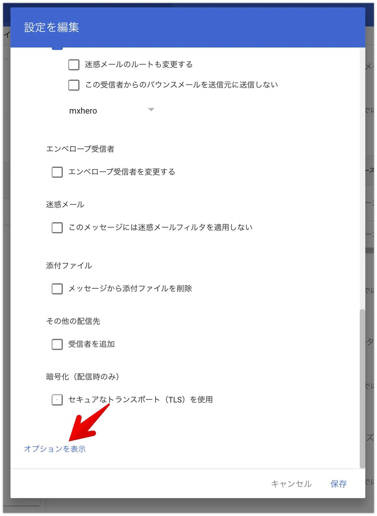 オプションを展開して設定し、保存します。