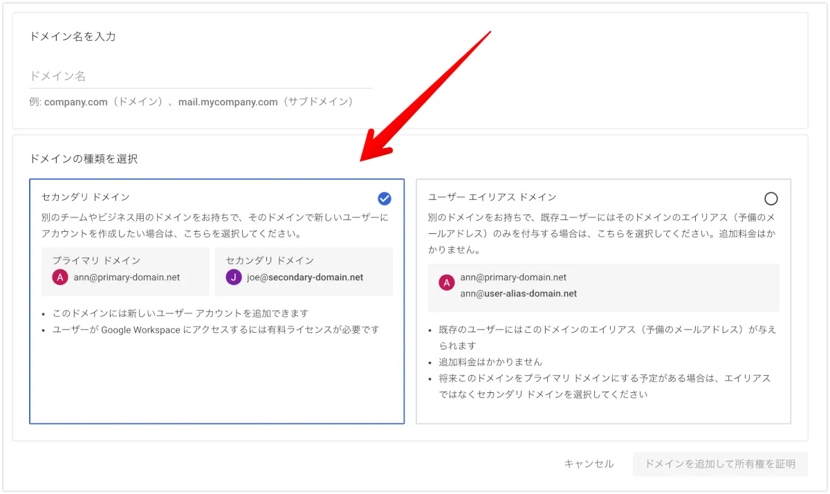 Google Workspace(Gmail)を利用している場合(セカンダリドメイン)