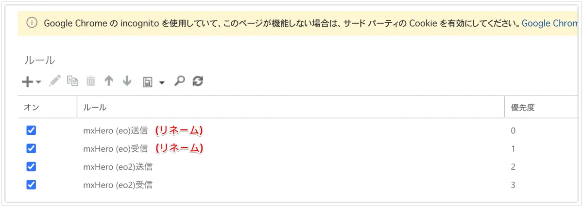既存のルールについても識別用にリネームします。