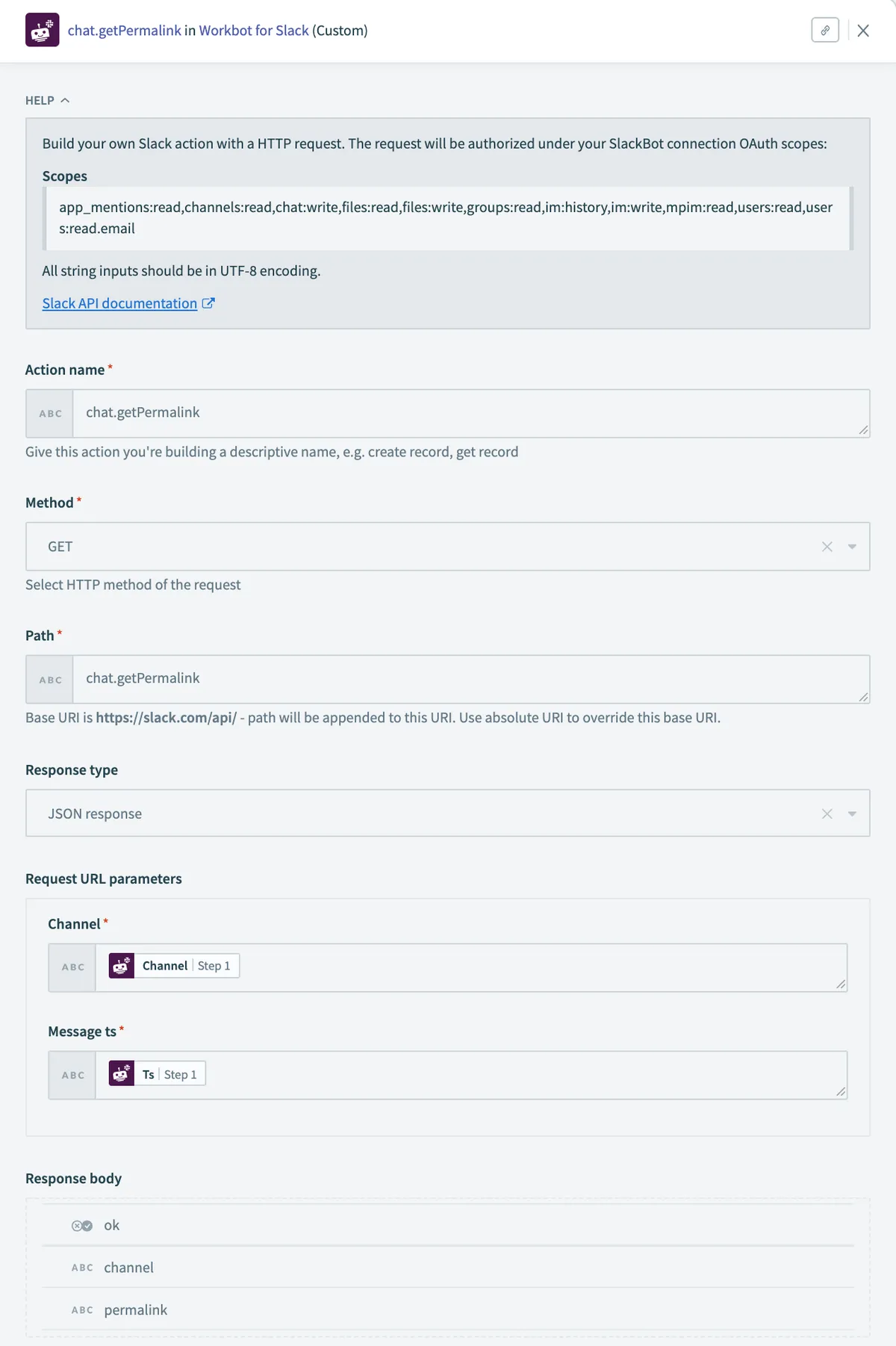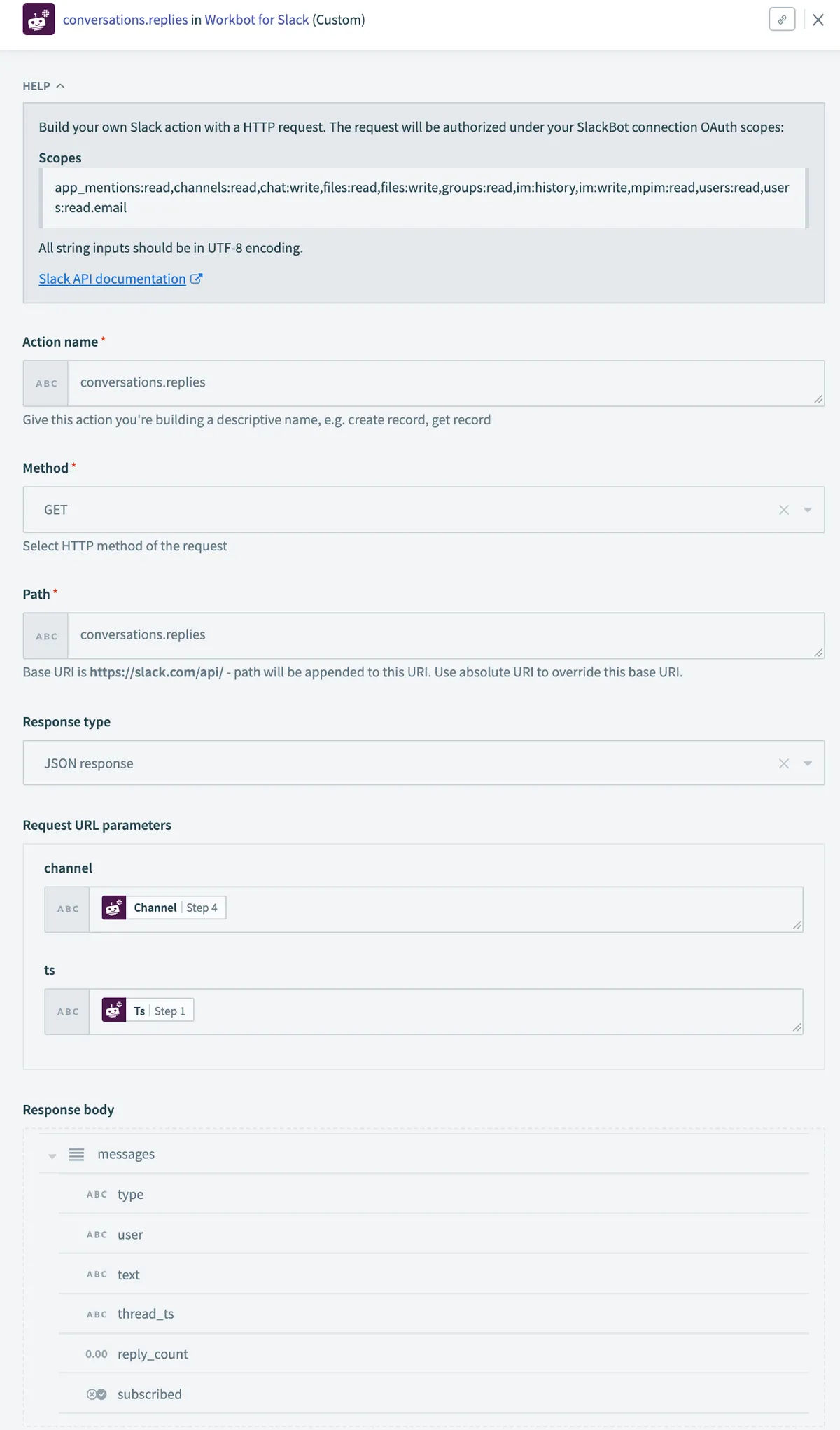 - inputのMessage tsはリアクションが押されたtsでなく、対象メッセージのtsを選択してください