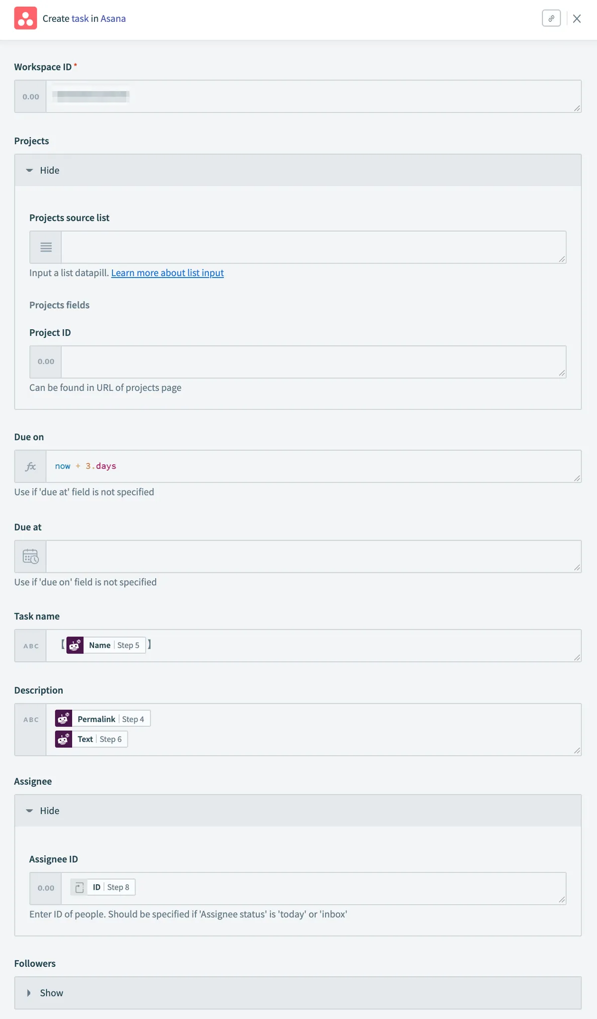 - projects:空欄で大丈夫(マイタスクに入れるため不要)