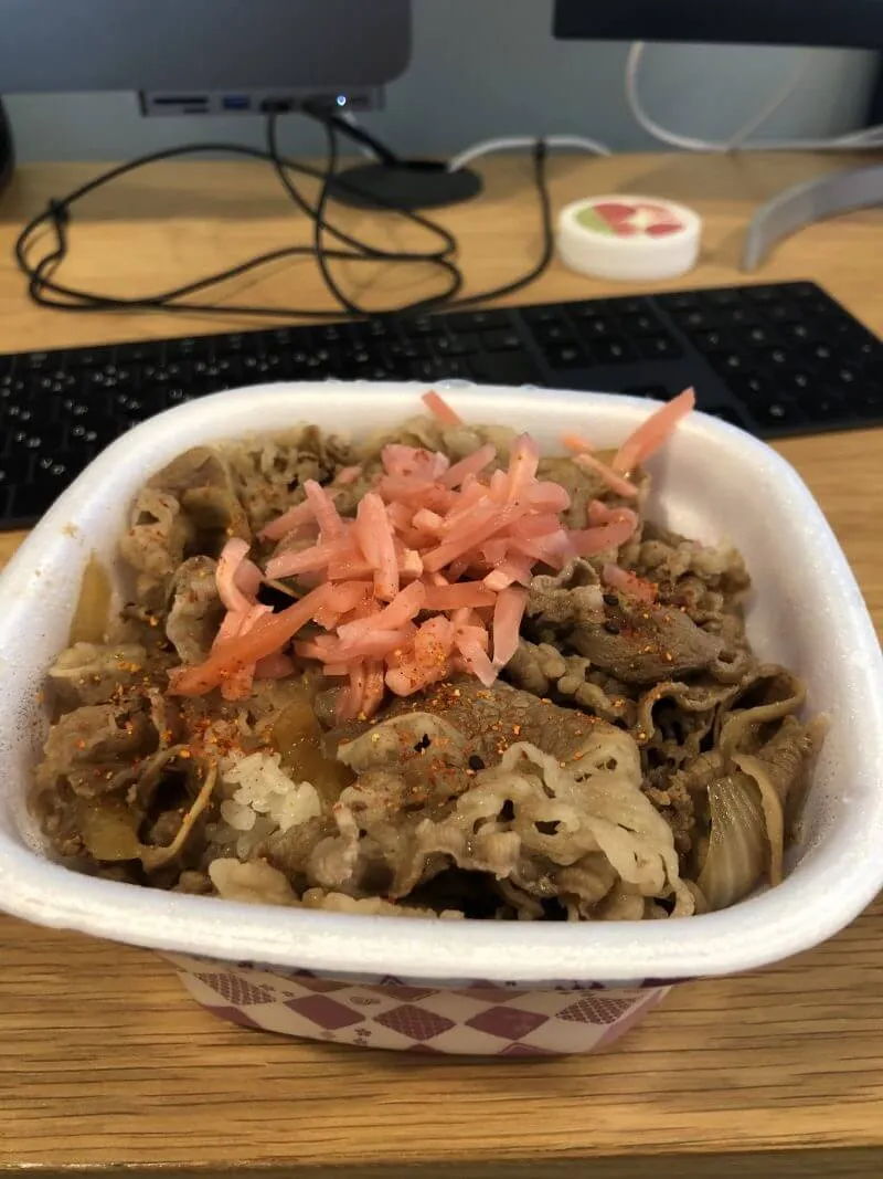 営業のとしきさんがおごってくれた牛丼「大」。ごちそうさまでした!!