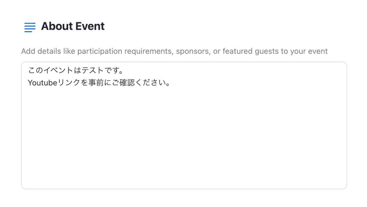 まずはイベント名や概要を記載します。
