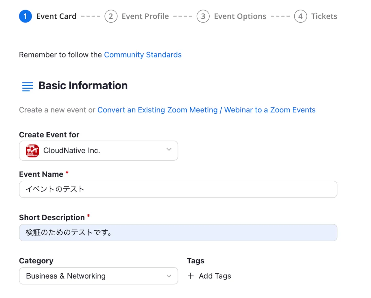 告知も挟みましたがZoom Eventsで1回配信を行うEventの作成方法をご紹介しました。