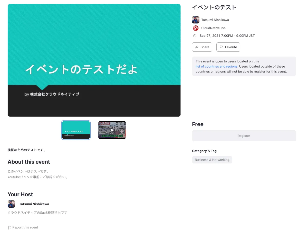 イベントの作成の流れがスムーズで慣れてしまえば簡単にイベント公開まで実施できます。日本において有料チケットが販売できるようになるとイベント作成、参加、決済までがワンストップでできるようになり、かなり強力なプラットフォームに成長するのではないかと感じます。