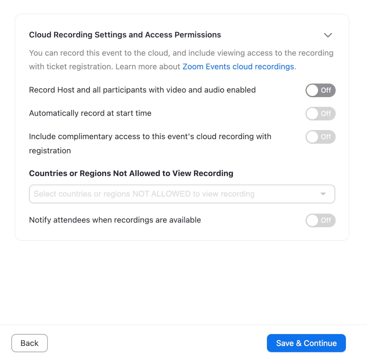 - ホストとパネリストが録画することを許可する