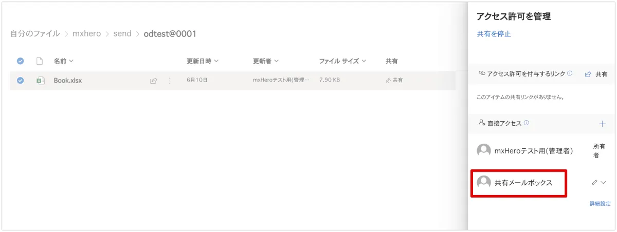 この設定の意図としては、配布リストアドレスを利用しているユーザーが各自で共有リンクの取り消しを可能とする意図によって行われるものですが、”共有”から設定することから推測される通り、共有アイテム扱いになります。