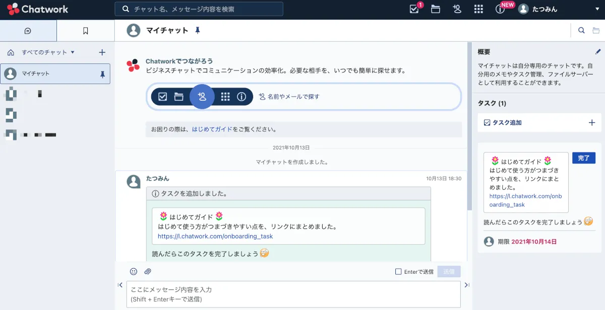 Chatworkで設定した専用ログインURLをブラウザに入れて試してみます。