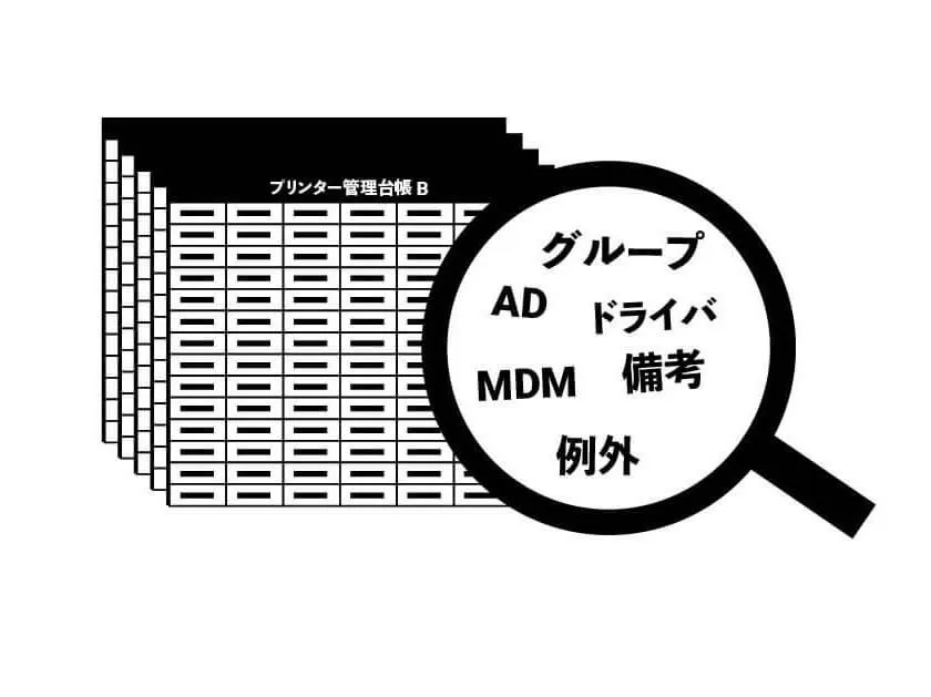 例えば、WindowsとMac両方を利用している社員のプリンター管理はそれぞれの管理ツールを確認しなければならず、一元的に管理をしようとすれば管理ツールとは別に台帳を作成する必要があるということです。