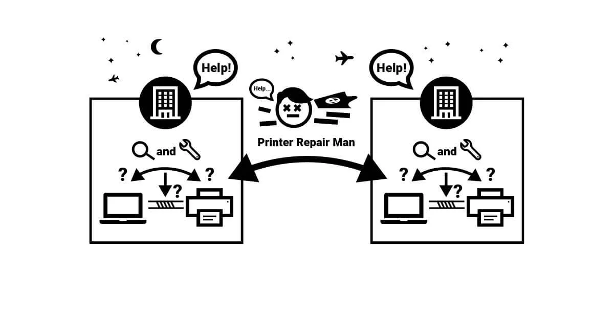 ユーザーからのプリンターに関するトラブルシューティングも、PCとプリンタサーバの間なのか、プリンタサーバとプリンターの間なのかを確認するのに手間取って、場合によっては出社や拠点に訪問しないと状況把握ができないことがあったりと、サポートコストが増加する要因となります。