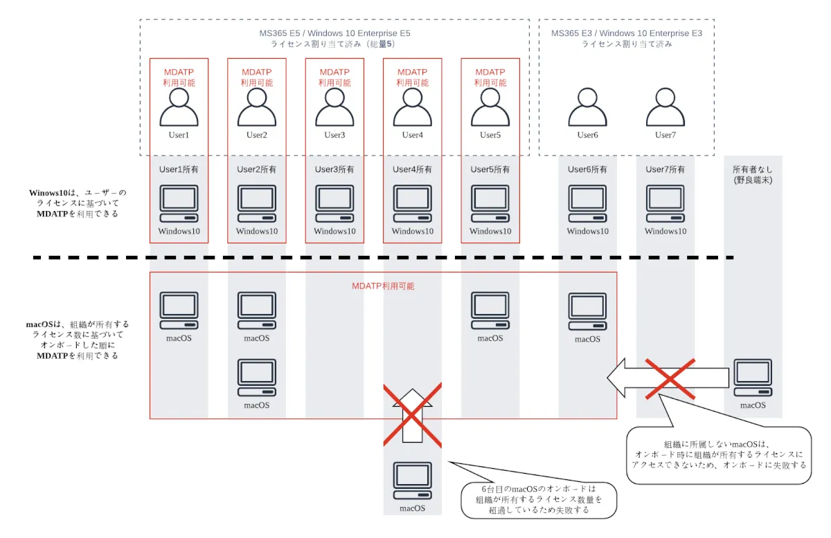 - MS365 E5ライセンスを割り当てていないユーザーが所有するmacOSがオンボードできたこと